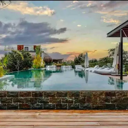 Disfruta de tus vacaciones en Tulum en el 5 Star Luxury Condo With Infinity And Cenote Pools Tulum. Ideal para quienes buscan una experiencia auténtica, está situado a 2 km de la Pirámide El Castillo y a unos 10 minutos en coche de la playa pública de Las Palmas.